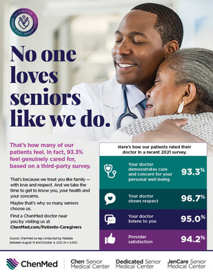 MIAMI, Nov. 23, 2021 /PRNewswire/ — Nearly 95 percent of ChenMed’s patients say that their provider genuinely cares for them, according to a recent survey by third-party research firm Medallia. ChenMed is one of the largest providers of primary care to Medicare-eligible seniors.