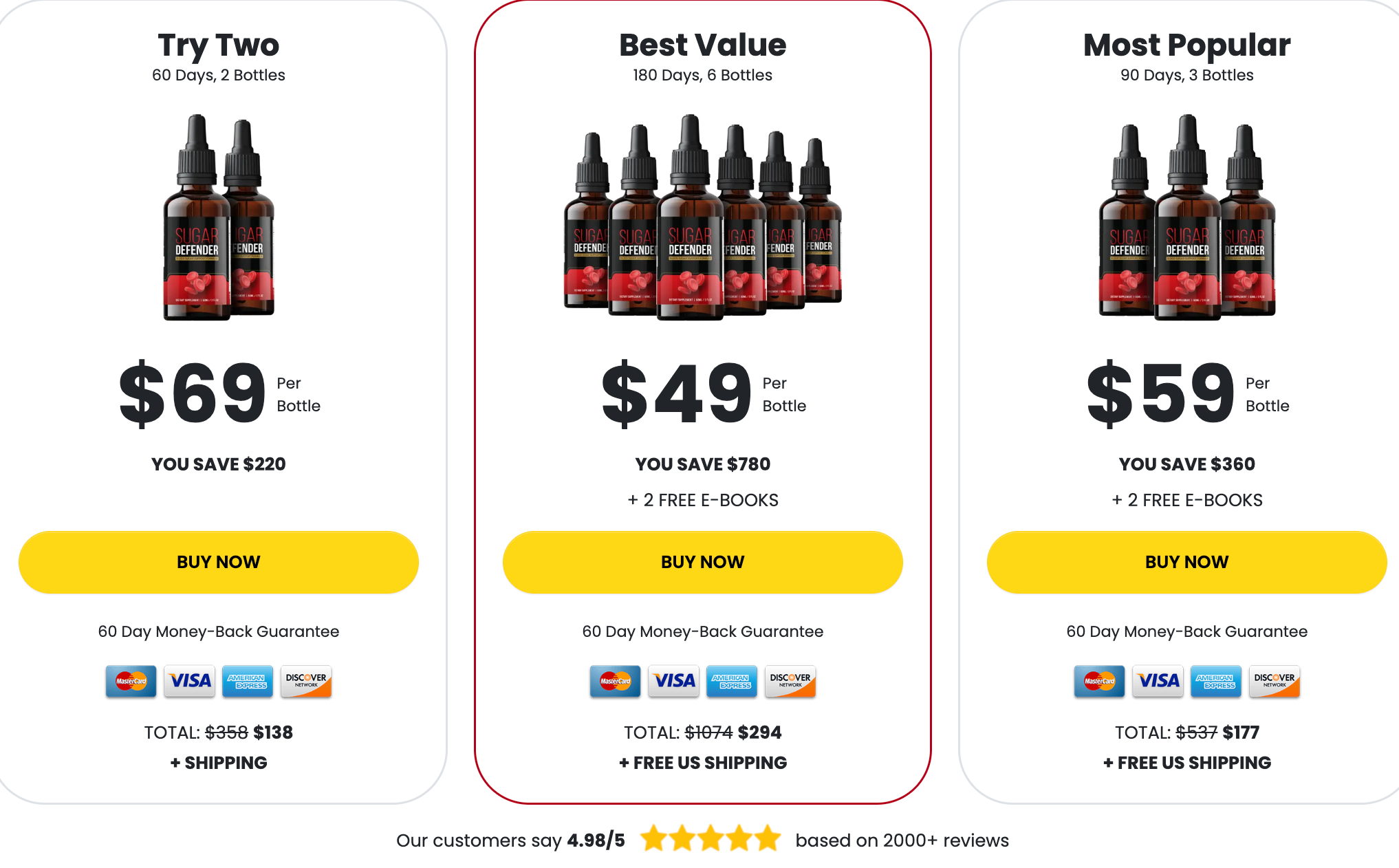 Sugar Defender is priced between $49 and $69 per bottle, with discounts available for bulk purchases. While the manufacturer offers a 60-day money-back guarantee, some customers have reported difficulties in obtaining refunds, especially when purchasing through third-party retailers like Amazon, so always purchase from the Official website.