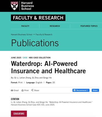 BEIJING, July 18, 2025 /PRNewswire/ — The business innovation case of Waterdrop Inc. (NYSE:WDH), Waterdrop: AI-Powered Insurance and Healthcare, was recently included in Harvard Business School (HBS)’s Case Collection, receiving recognition from this world-renowned academic institution. Developed by Professor Li Qi from the School of Management and Economics at The Chinese University of Hong Kong (Shenzhen), the case examines how Waterdrop has applied advanced AI technologies to drive systematic innovation and strategic transformation amid profound changes in the insurance and healthcare sectors. By fostering a diversified health protection ecosystem and enhancing operational efficiency, Waterdrop has achieved a balance between social and commercial value, offering a replicable “China solution” for global insurtech development.