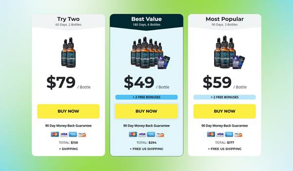 3 bottles (90-day supply) – $59/ bottle + free US shipping + 2 free bonuses